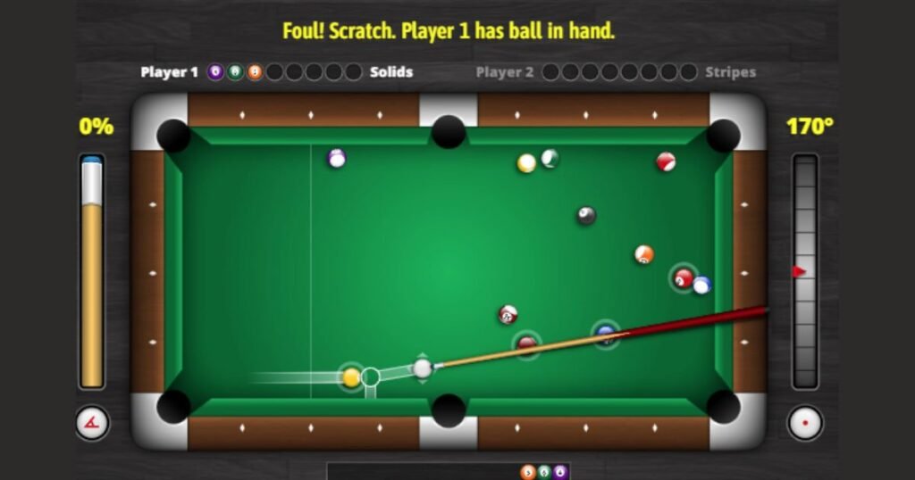 One of the most popular online billiards games is 8 Ball Pool. The game may seem to be a simple one first sight, you need to aim, to strike the ball, and attempt to pot it. Nevertheless, most novices lose games due to the fact that they lack proper control of the cue ball, excessive power, or they lack a plan of action on their next move.
